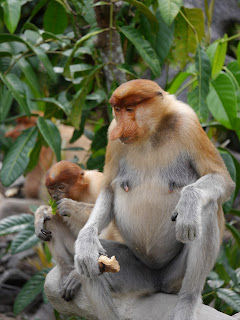 We visit another sanctuary where proboscis monkeys seem to be everywhere, hanging out in trees and by the food stations with their enormous noses and huge stomachs.